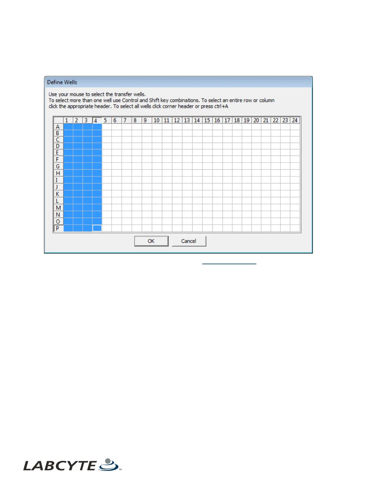 wells that are available for transfer. Select the wells you want to include in the transfer. Repeat this step for the other