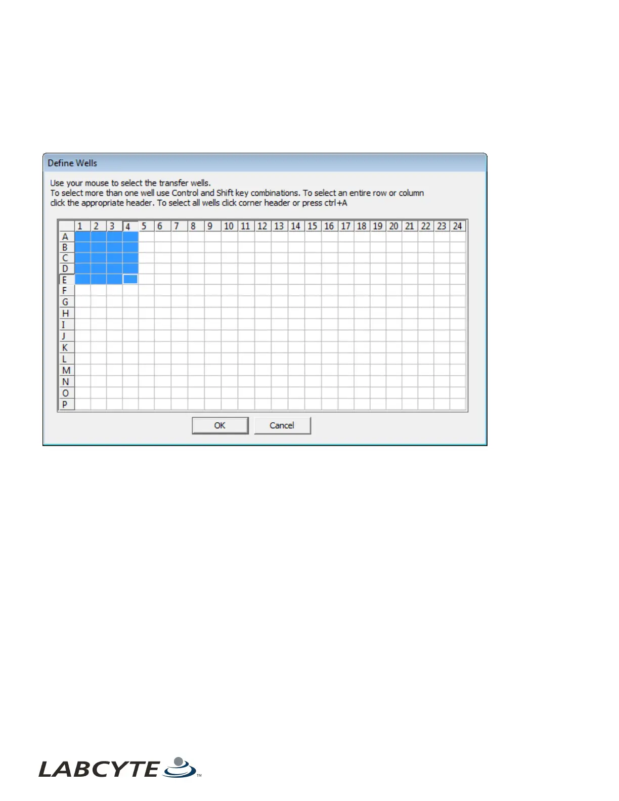transfer from wells A1 through E4. There are several methods to define which wells belong in the transfer map.