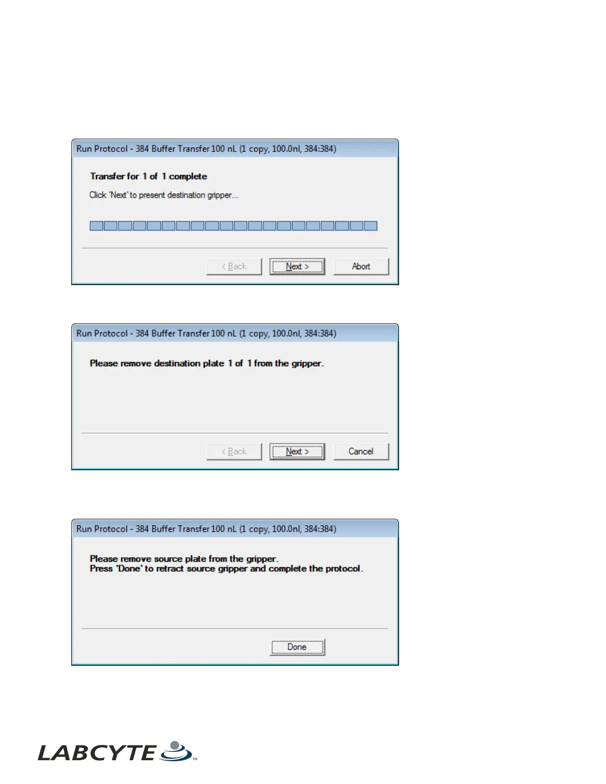 microplate well. A progress bar keeps you informed of the liquid transfer in progress.