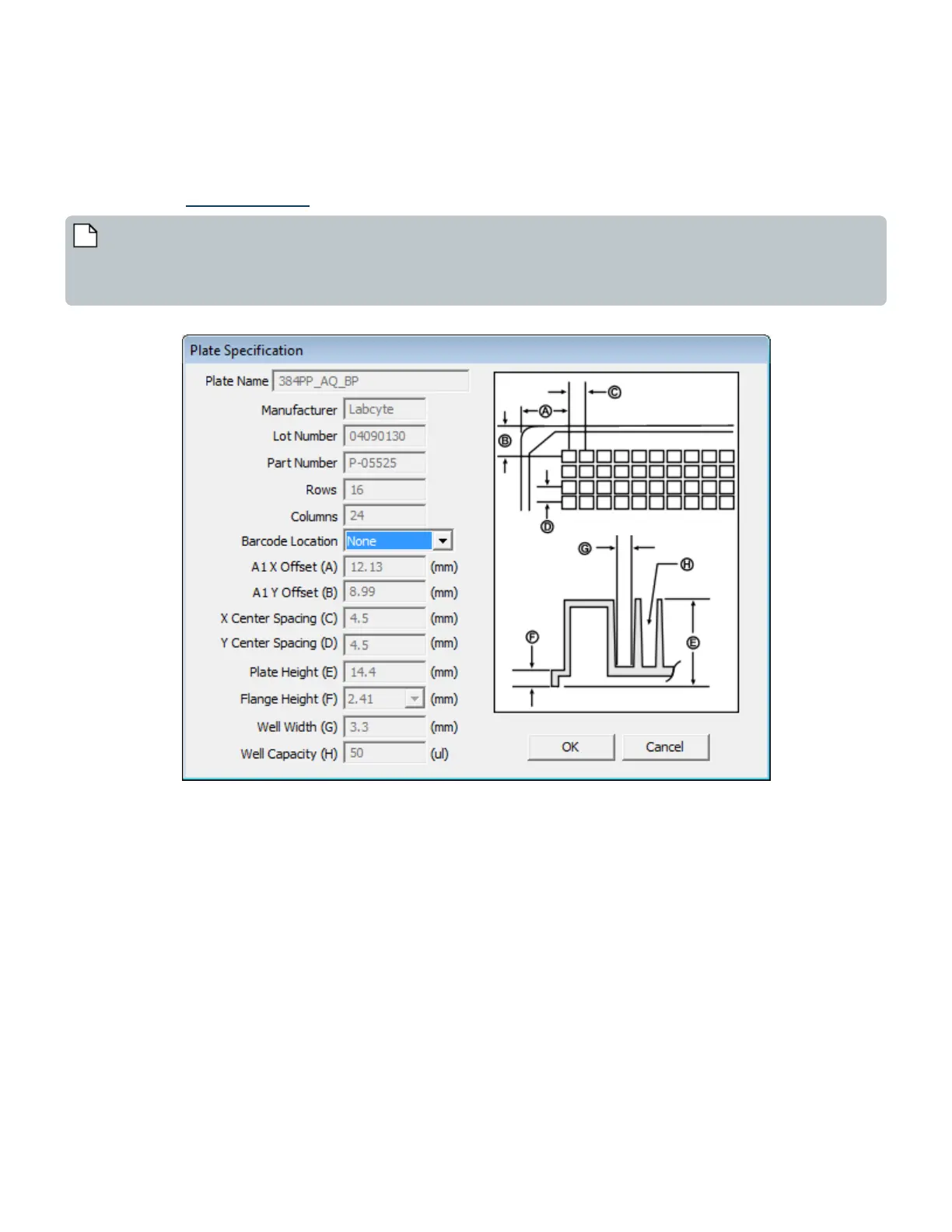 imported into Echo Liquid Handler software. However, other plate parameters cannot be changed--except for barcode