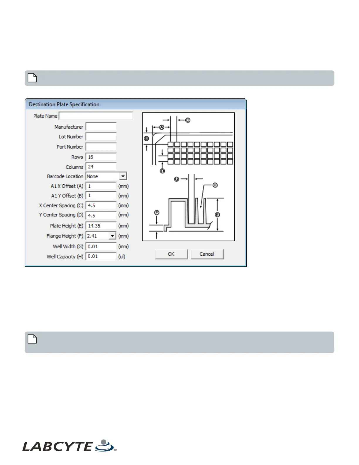either Add or Edit. The Destination Plate Specification dialog box will open.