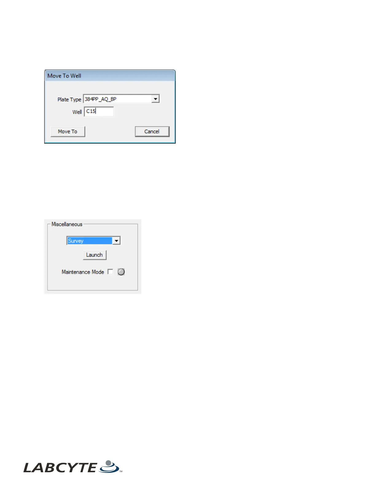 3. Click the Move To button to move the acoustic transducer directly beneath the specified well.