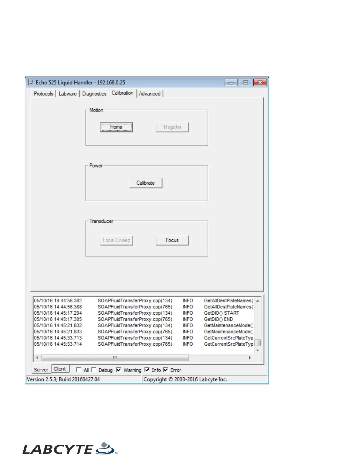 Labcyte Echo 525 - Calibration Window
