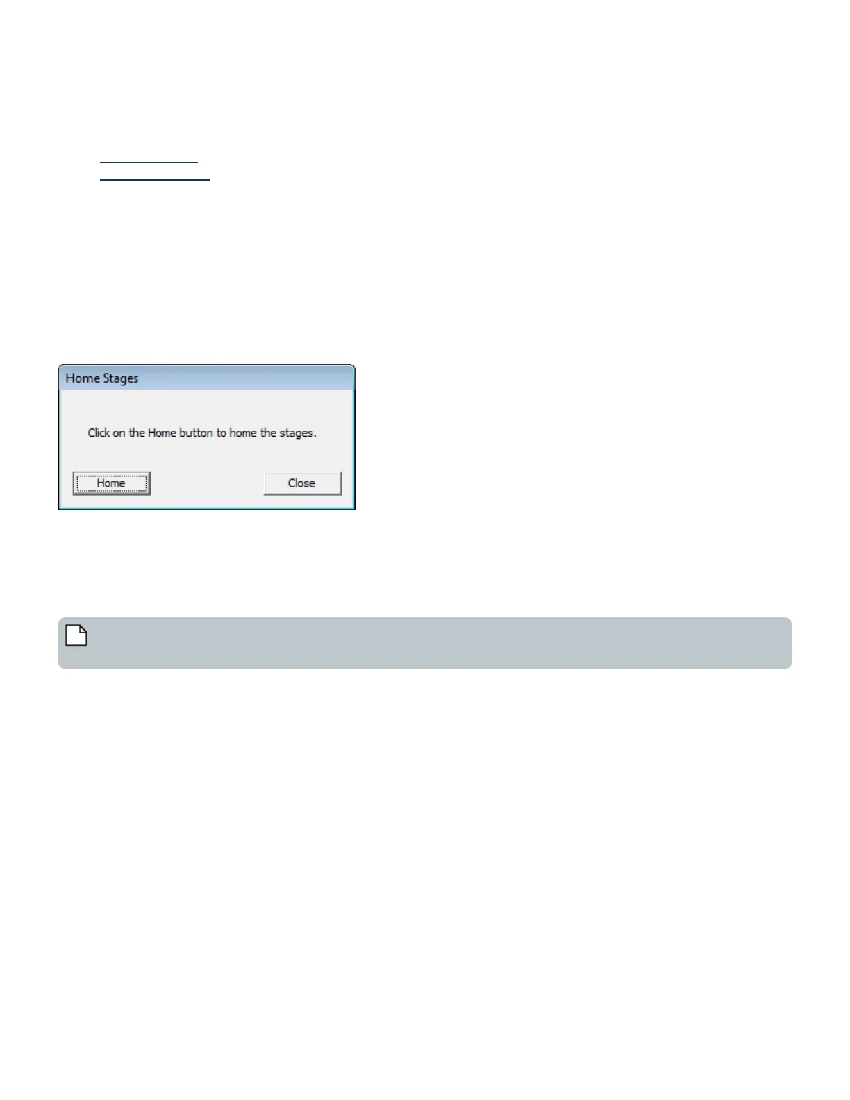 The Home button moves each Echo stage (destination plate gripper stage, source plate gripper stage, and acoustic transducer) to