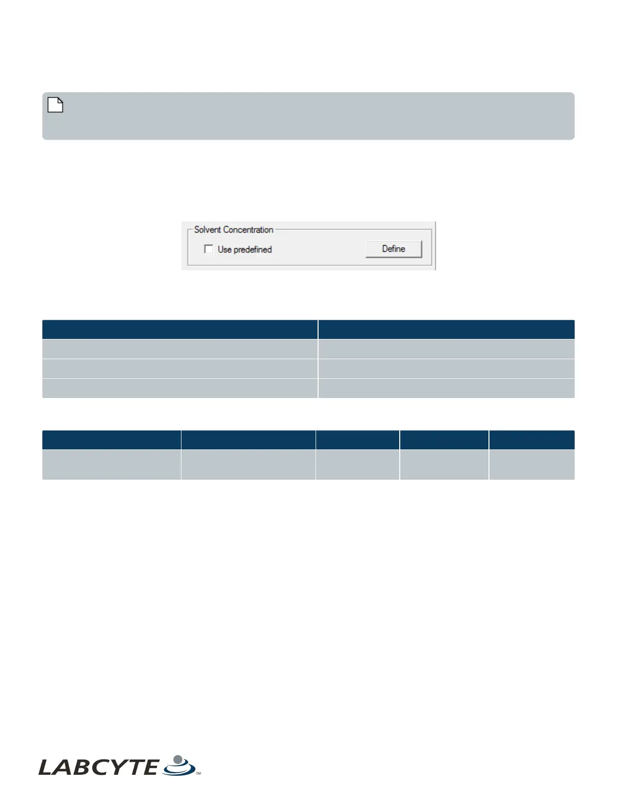 the solution. The table below shows the equation and values required to calculate the solvent concentration value.