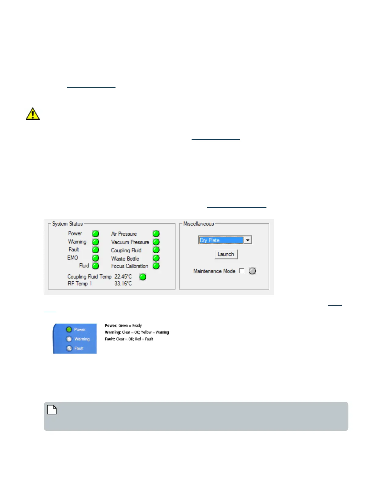 Figure 104: LCD Panel with power, warning, and fault indicator lights