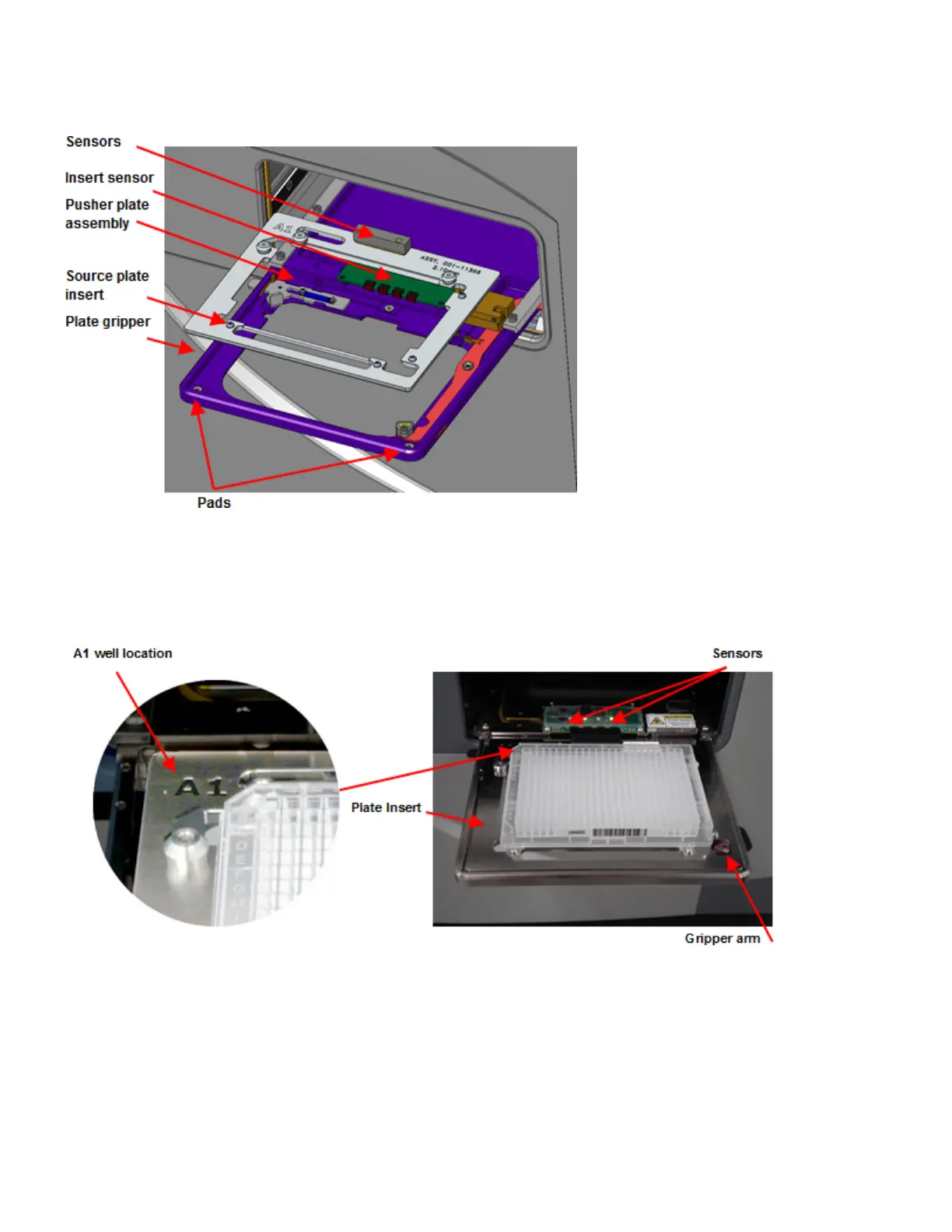 Figure 16: Plate insert and gripper arm securely hold the source microplate