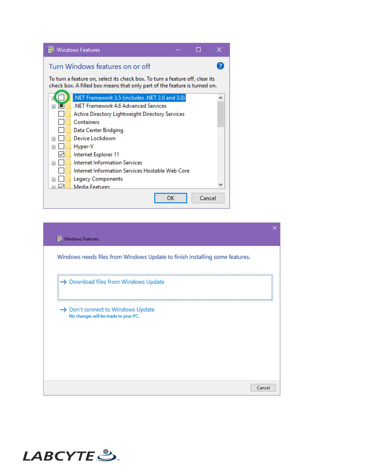 4. If a window appears with a request for the additional files, click Download files from Windows Update.