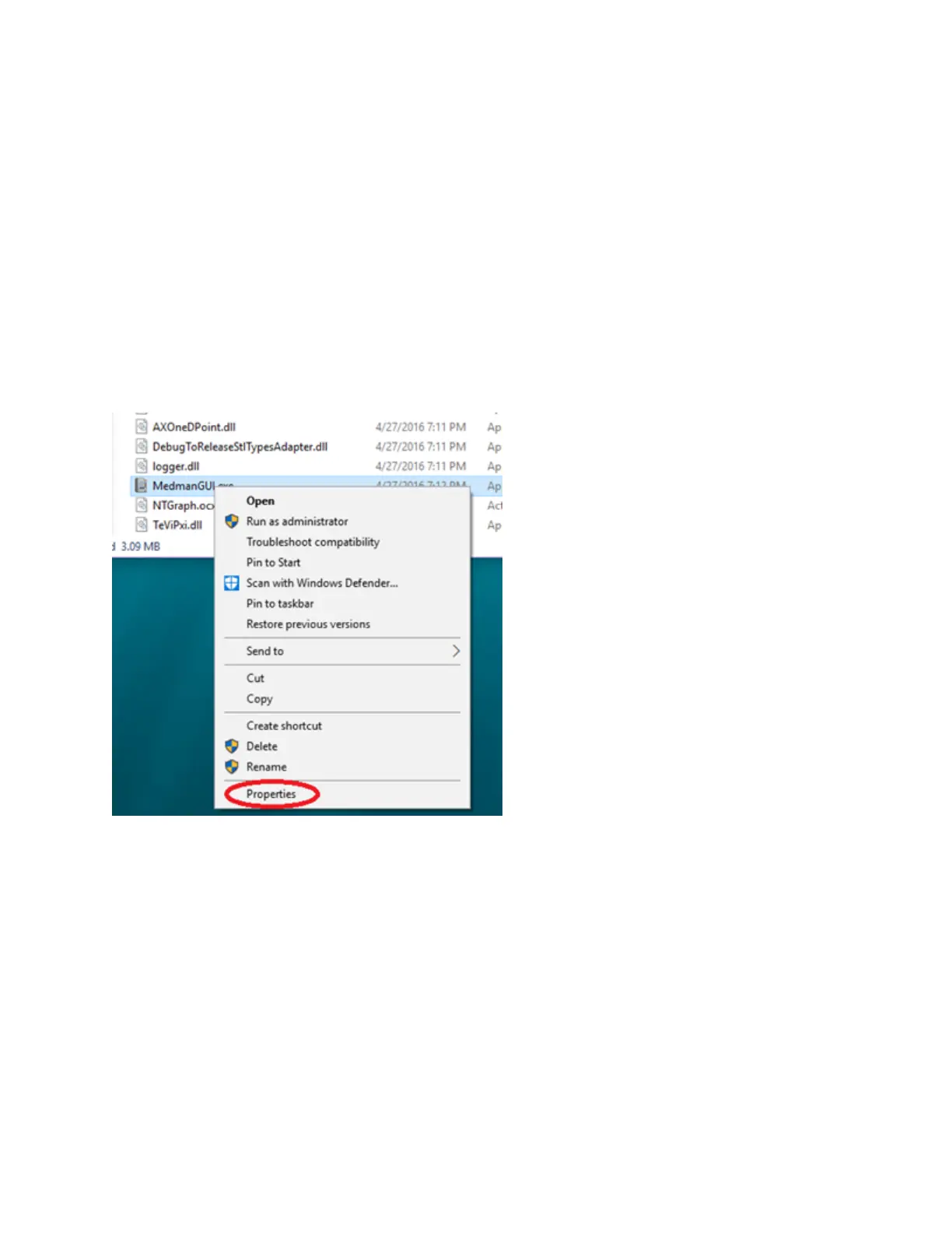 2. Right-click on the MedmanGUI.exe and select Properties.