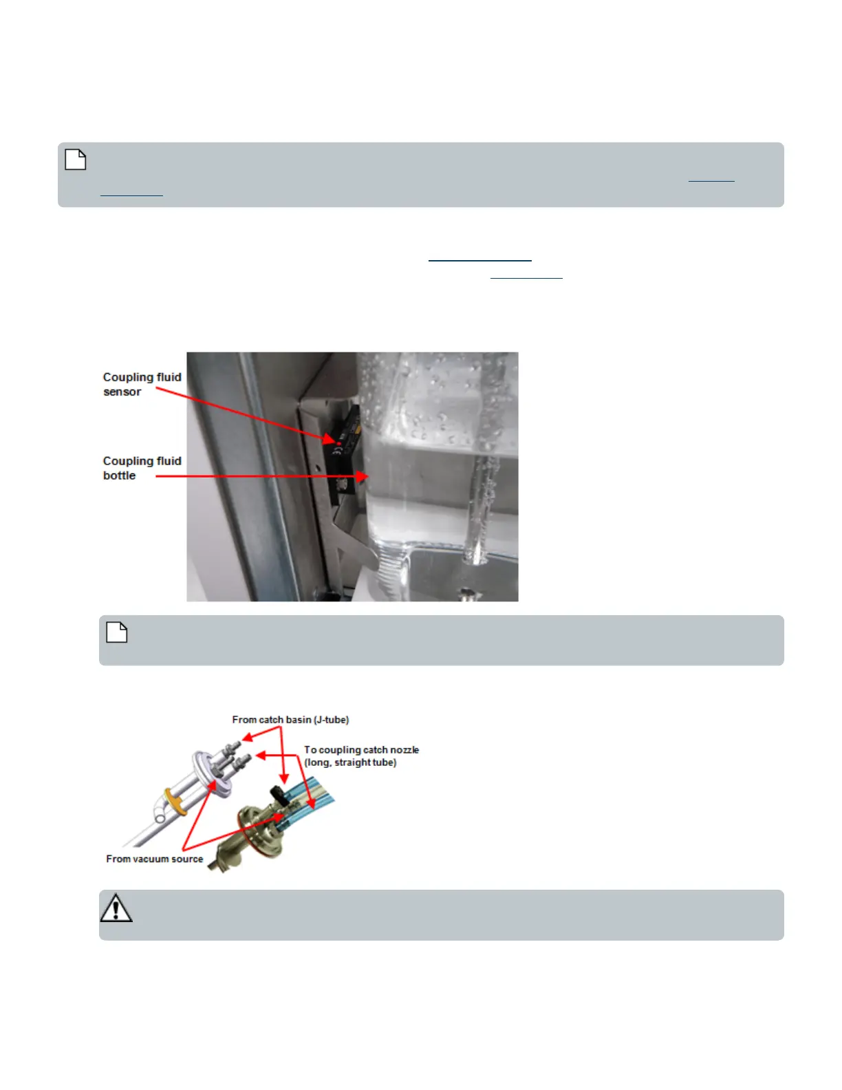 4. Set up the coupling fluid bottle. Ensure that the bottle cap is firmly attached to ensure a tight vacuum seal. Place the filled