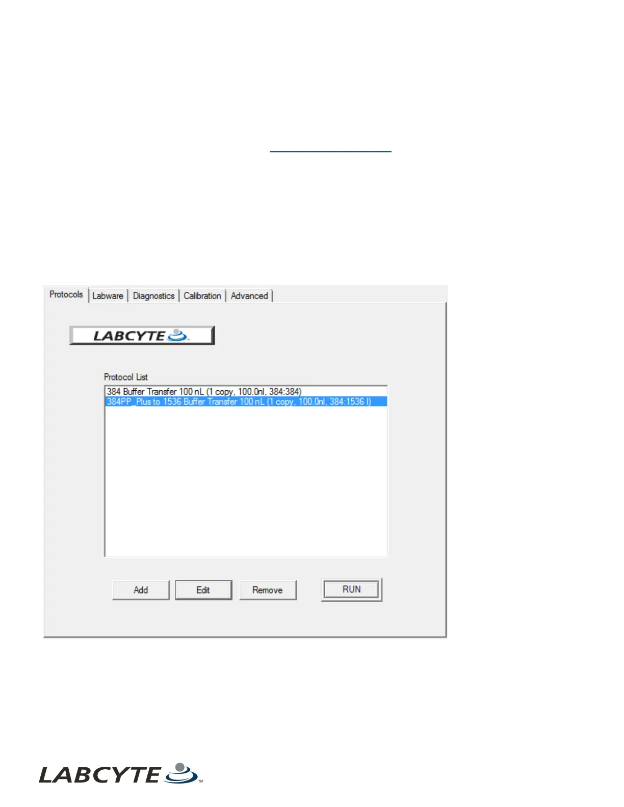 The Protocols tab is the first window that opens when you start the Echo Liquid Handler software. The Protocol List displays the