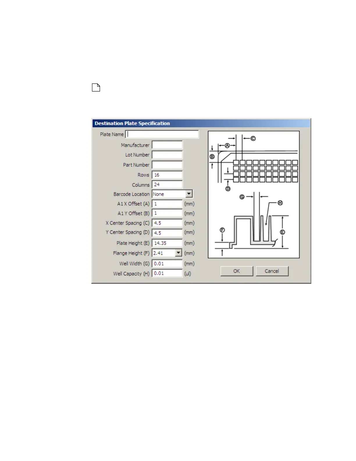 The DESTINATION PLATE SPECIFICATION dialog box will open.