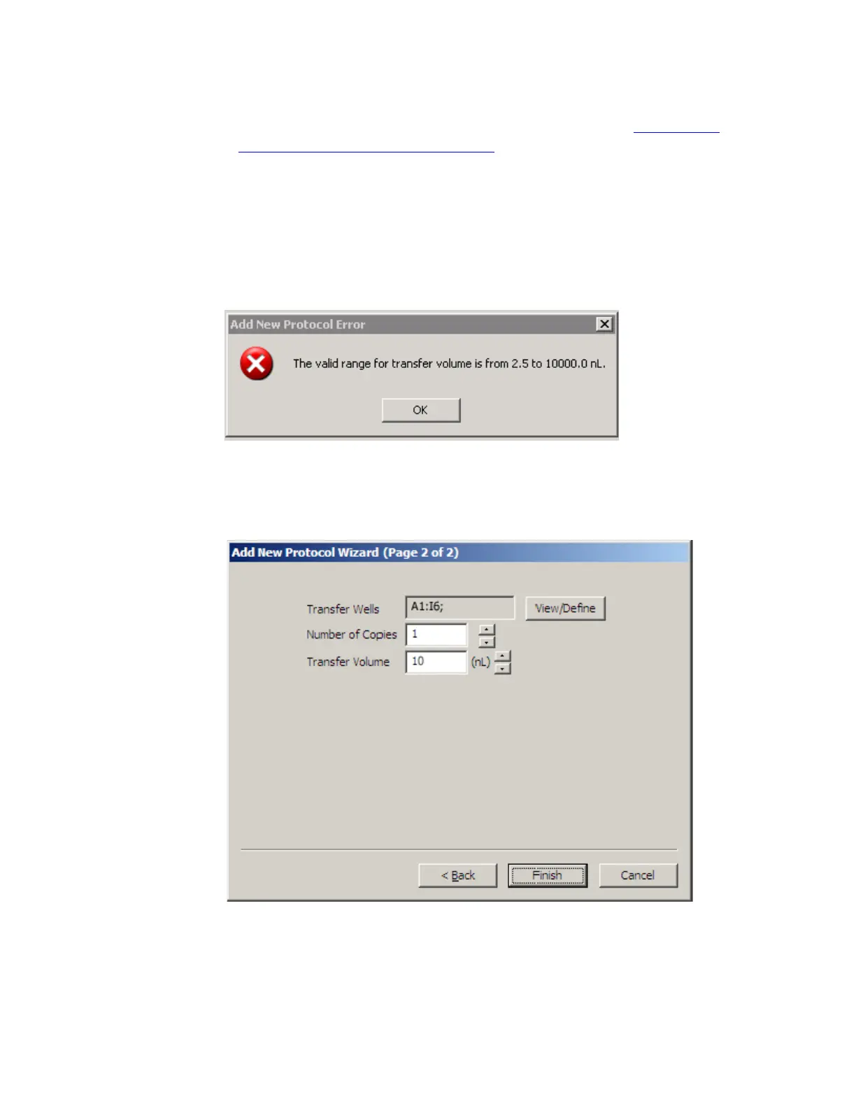 Figure 5.6 Invalid transfer volume for 384-well plate