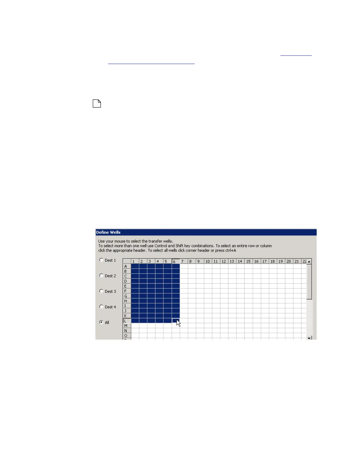 Selected wells (highlighted in blue) will be transferred when the protocol is