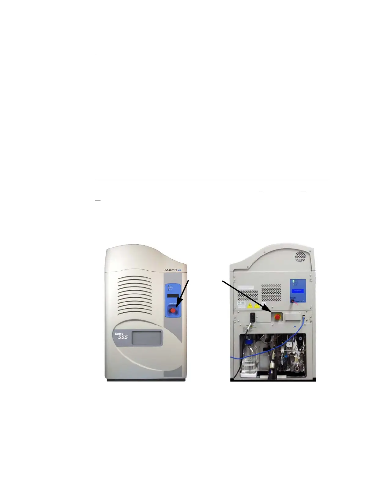 activity in the Echo liquid handler. There are two Emergency off switches,