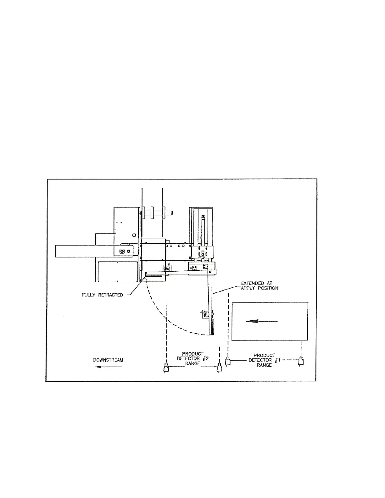 fully extended position, or the side of the product, as the product arrives at the apply position.