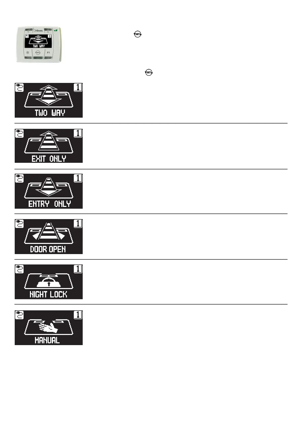 Pressing with a pulse the button , select the automatic door operating mode.