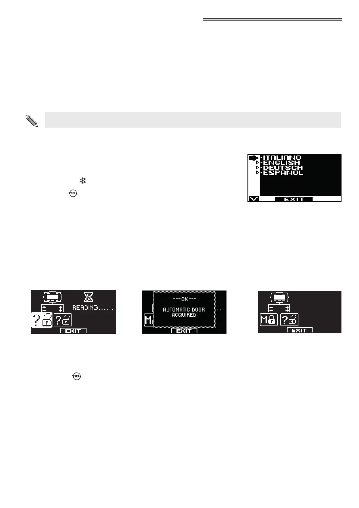 When the acquisition of the serial code is completed, the display must show the closed padlock symbol on letter M and the open padlock