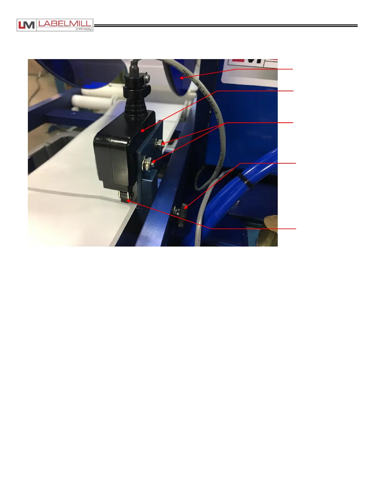 Loosen the lock screw on the Mechanical Label Sensor Assembly and slide it forward or backward on the