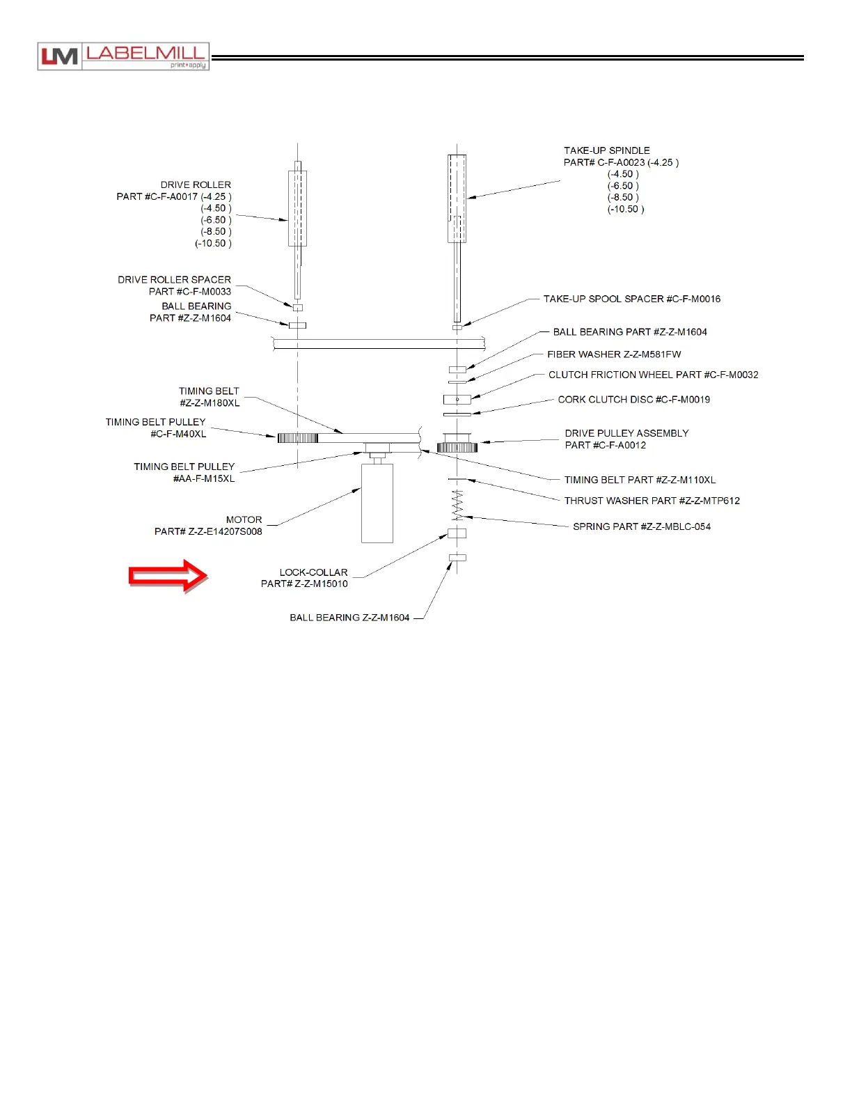the lock collar 1/32" toward the take-up spool.