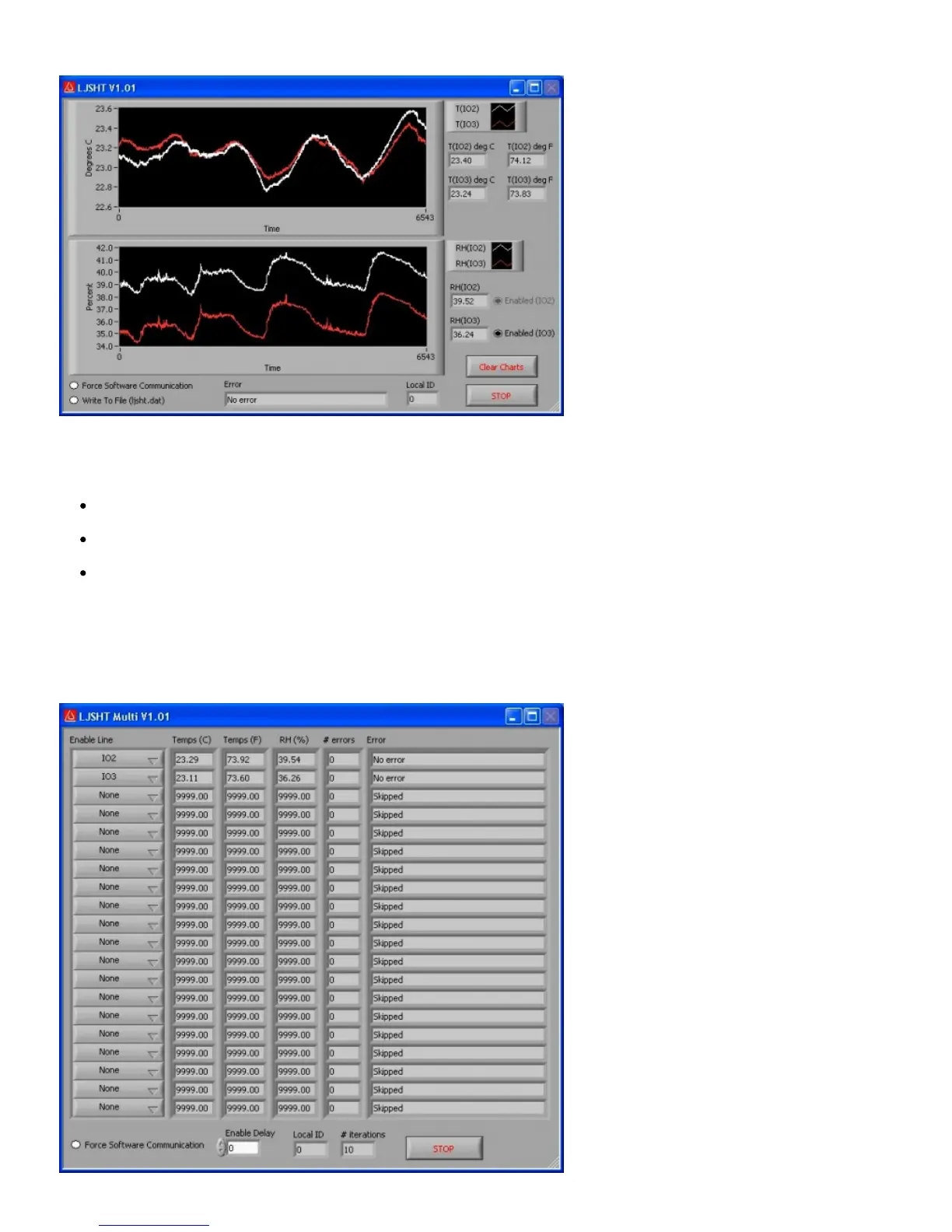 Force Software Communication: Forces software based SHT1X communication, even if the LabJack U12 firmware is