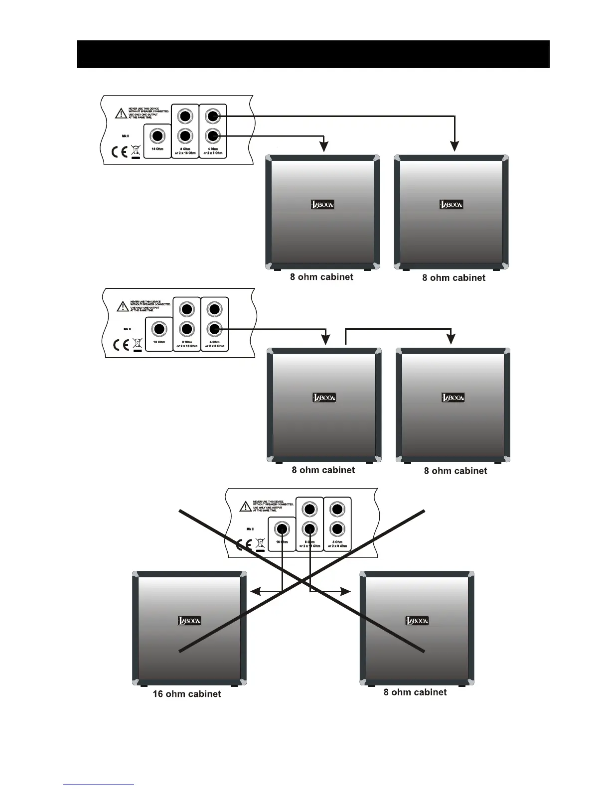 Laboga Mr.Hector - Speaker Cabinet Wiring Guide; Connecting 8-Ohm and 4-Ohm Cabinets; Incorrect Wiring Scenarios