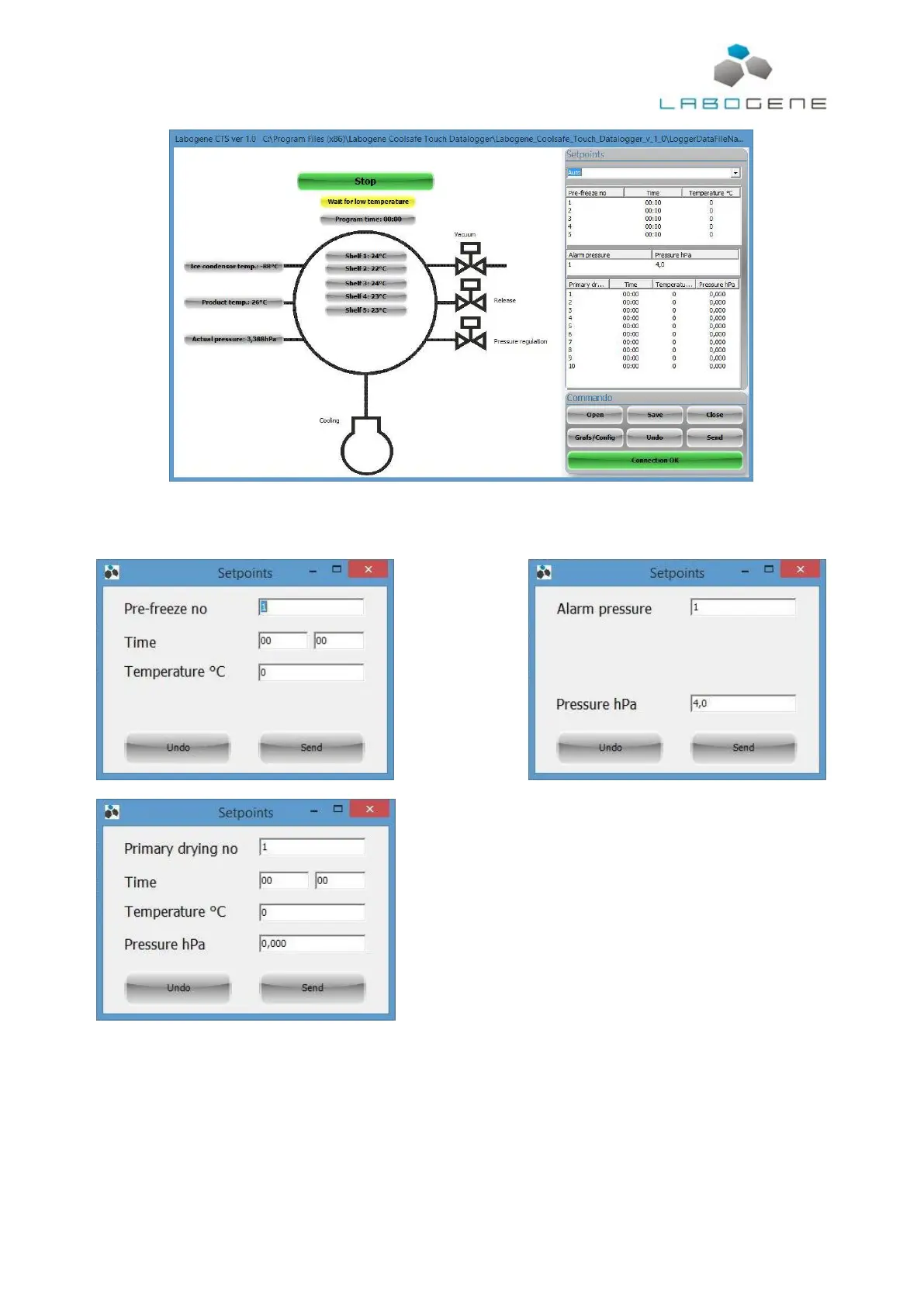 To enter values for the different steps, click on the appropriate screen area and the input boxes