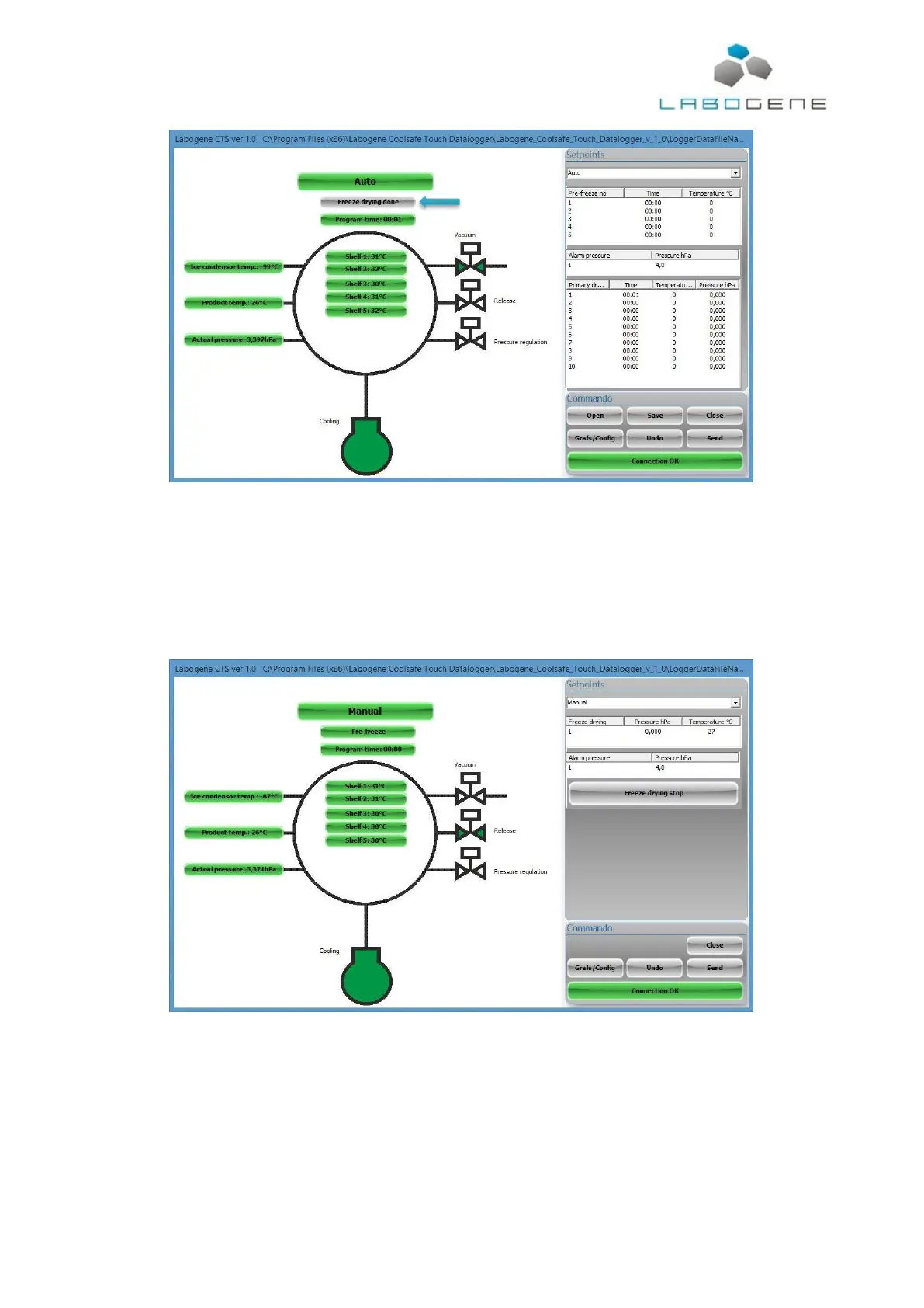 When the automatic freeze drying process is done it will be show in the status box. The freeze dryer