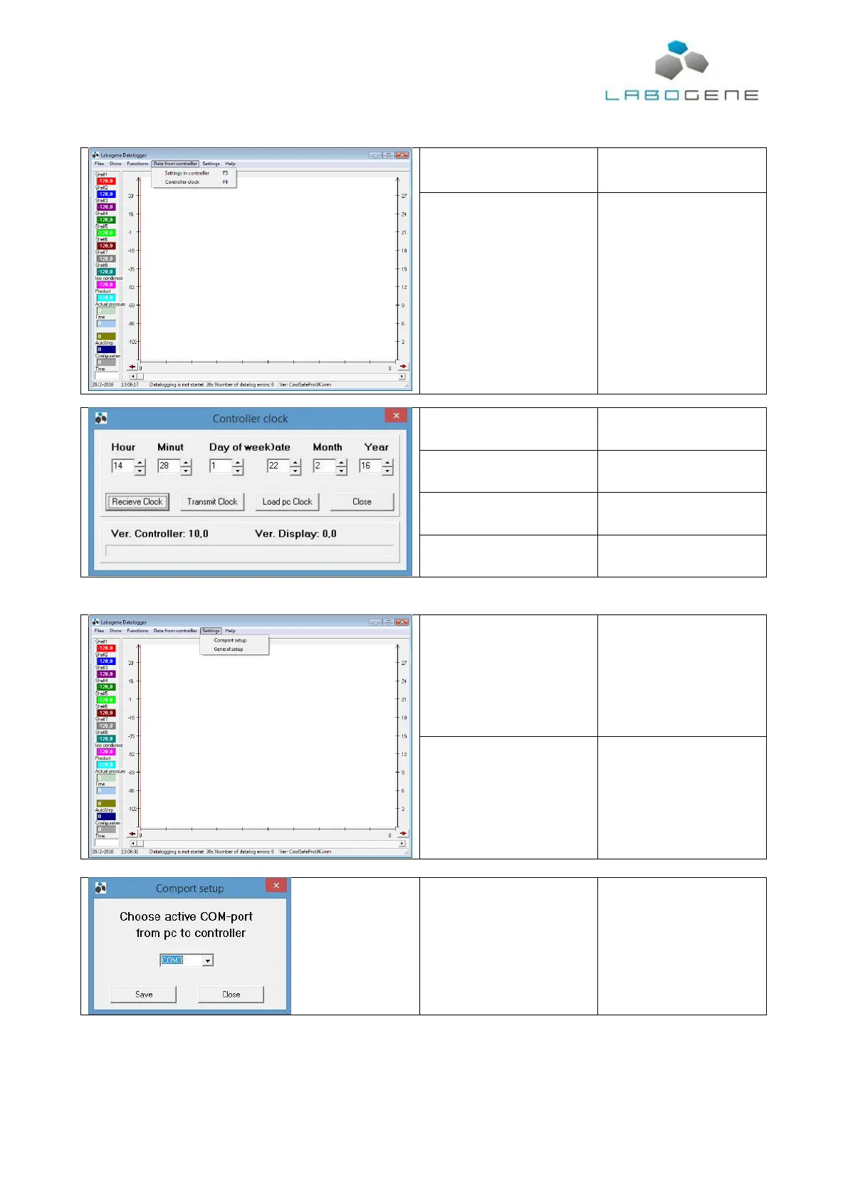 LaboGene CoolSafe - Menu - Data from Controller; Menu - Settings