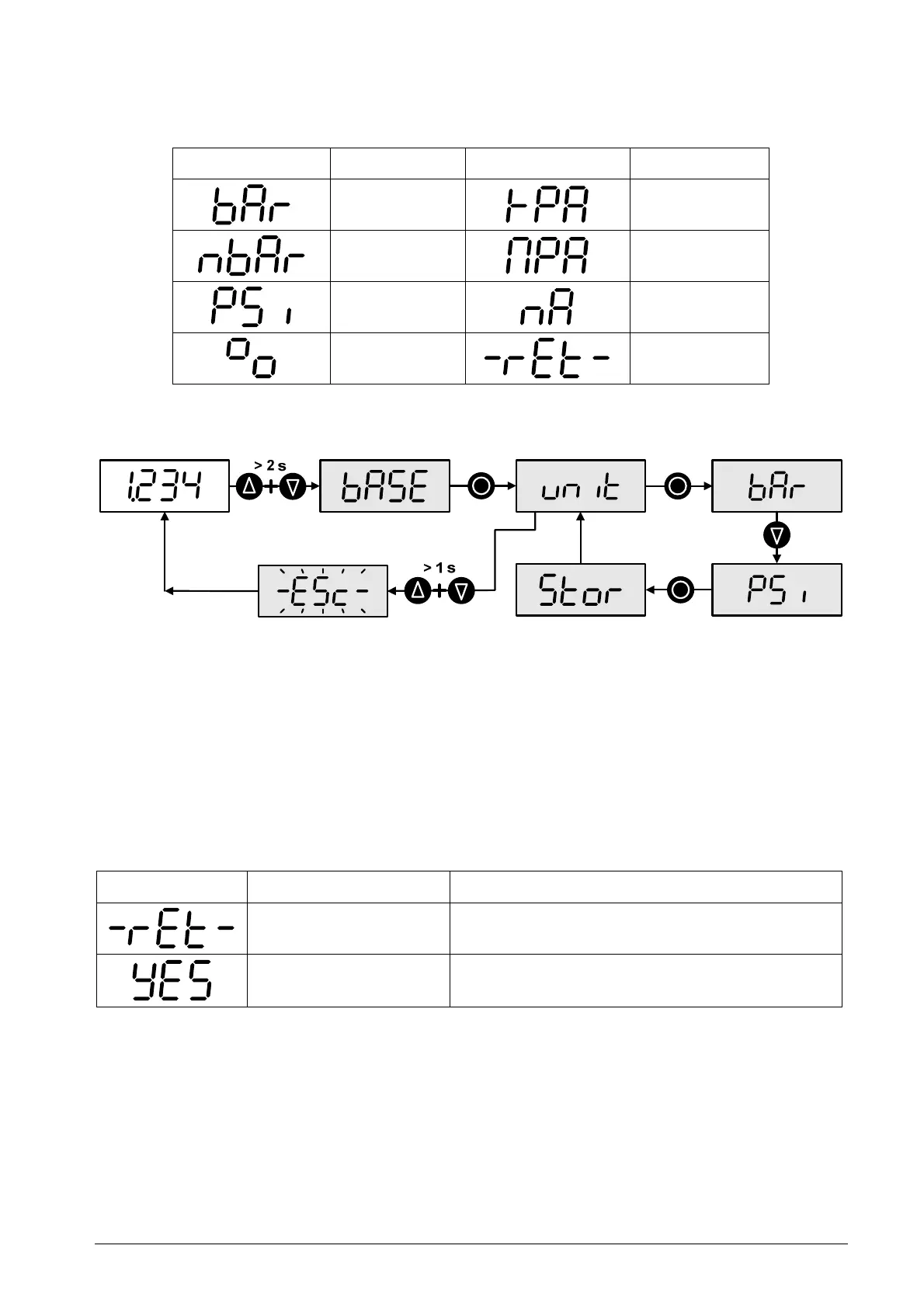 Figure 10: Operator actions for changing the unit from bar to PSI
