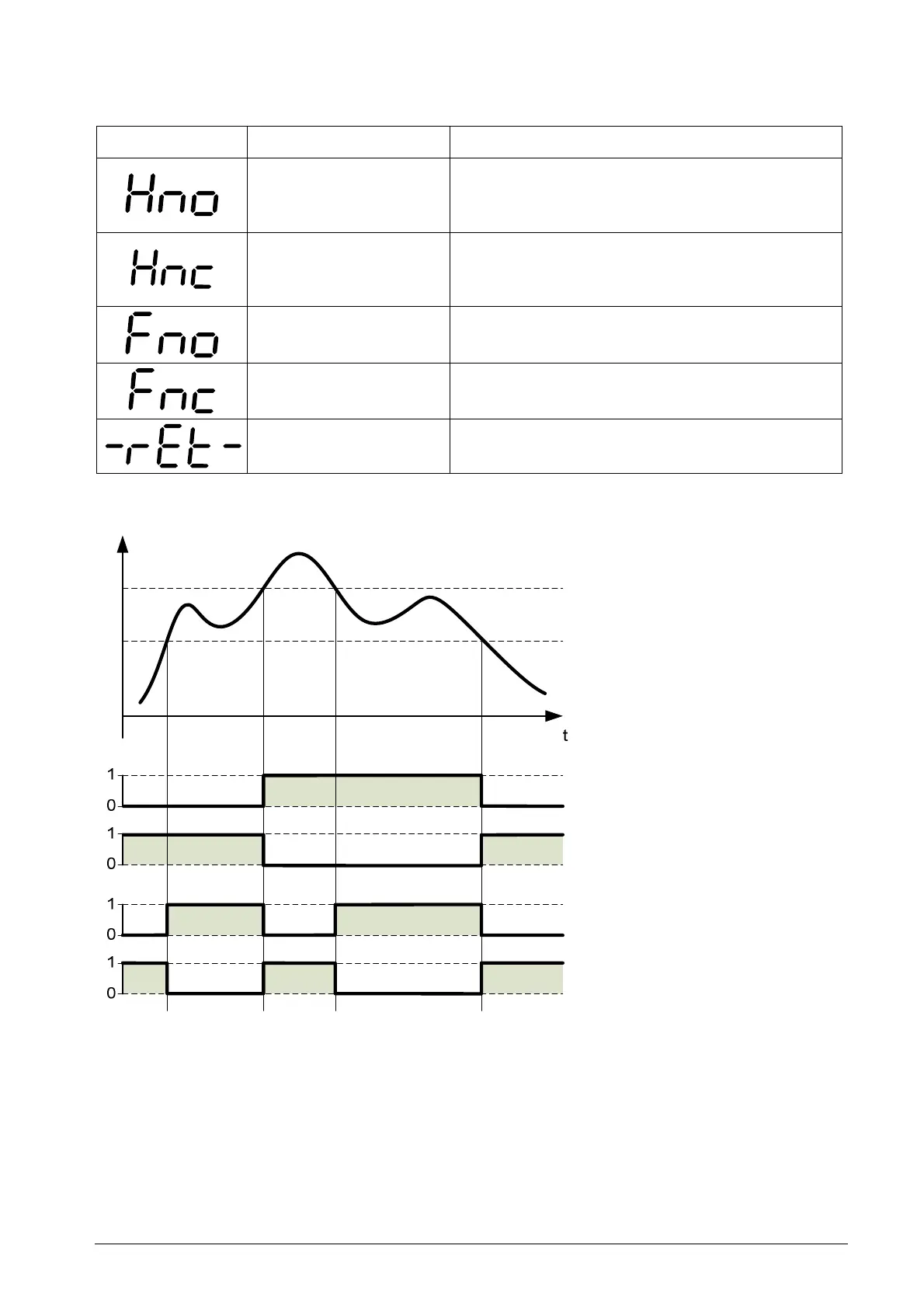 Hysteresis / normally closed (Hnc)
