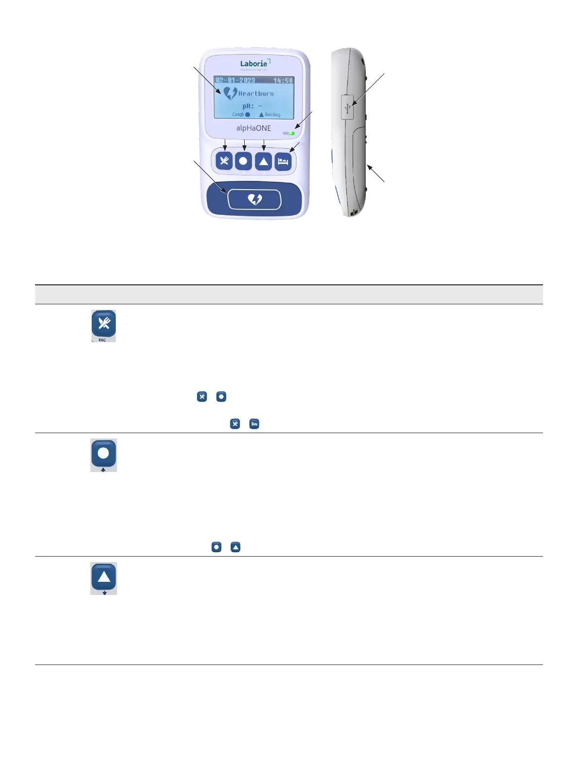 Table1-1: pH Capsule System Data Recorder User Interface