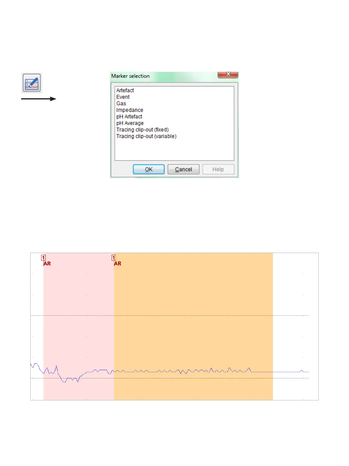 markers.Figure4-13showsanexample,inwhichthestartvalueofthepHdropiswithinartifactmarkers.