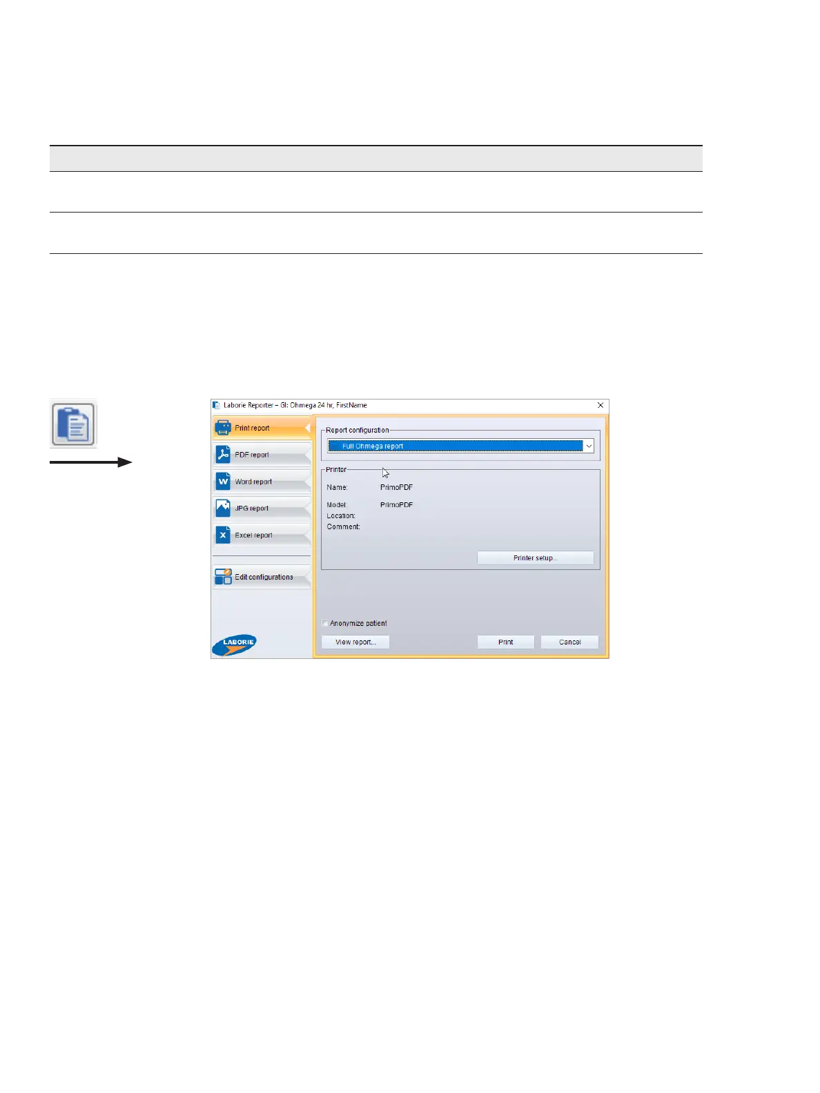 Figure4-32: The Laborie Reporter Dialog Box