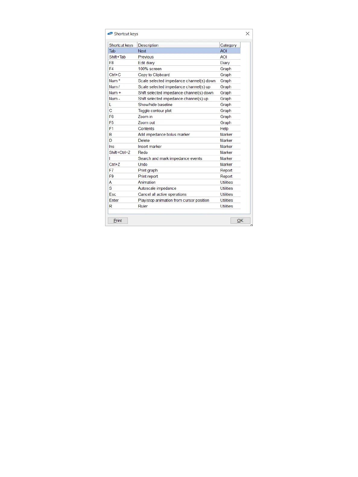 Ifyouwouldlikeahardcopyoftheshortcutkeysoverview,clickthePrint button.