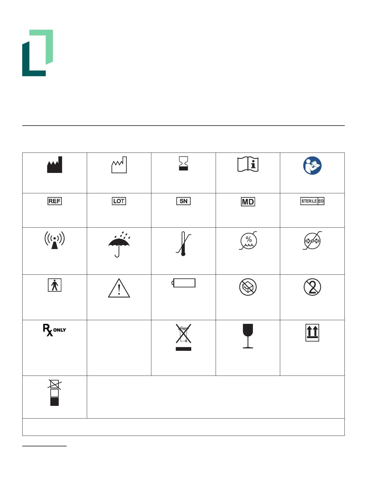 NOTE: Sterility symbols are applicable to consumable devices only. Please refer to consumable device Instructions for Use for complete symbol