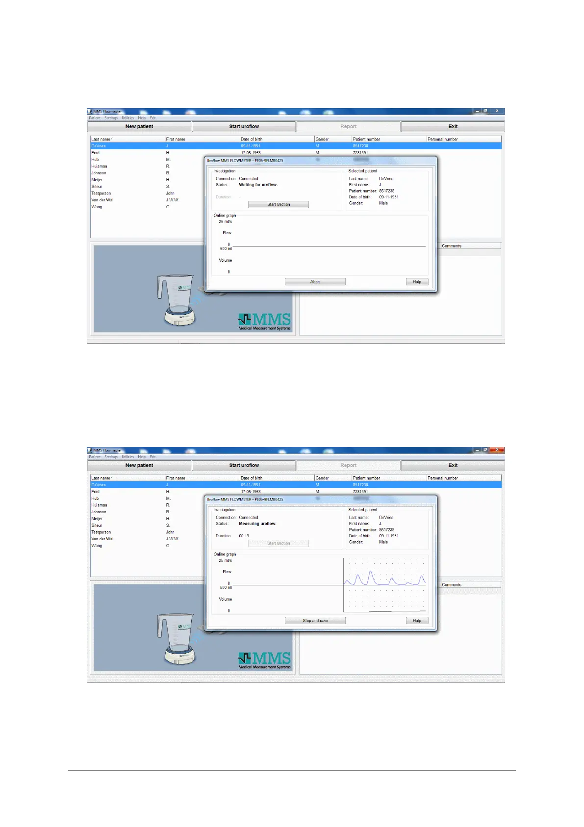 ▪ Click on the Start uroflow button.