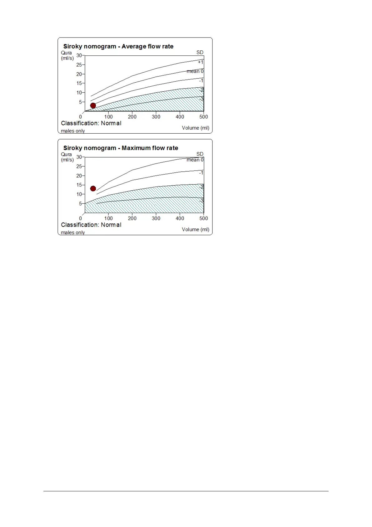 for this urine flow. A score below -2 standard deviations indicates an