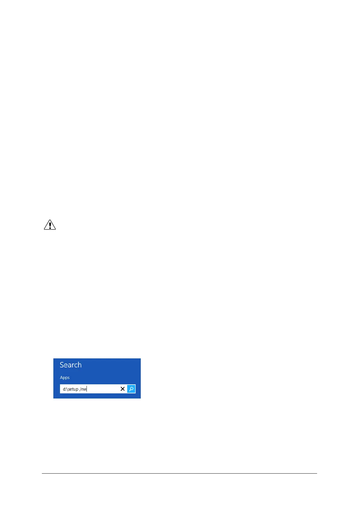 ▪ Type d:\setup /nw and press Enter (you can also start typing when you