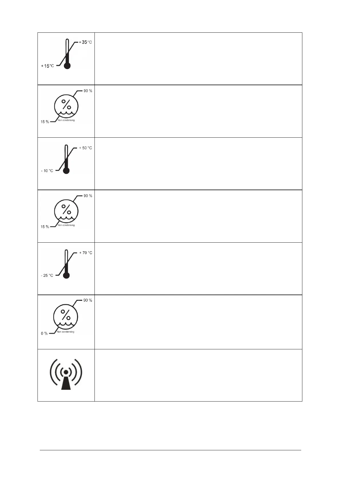 Operating Conditions: Relative humidity range 15% to