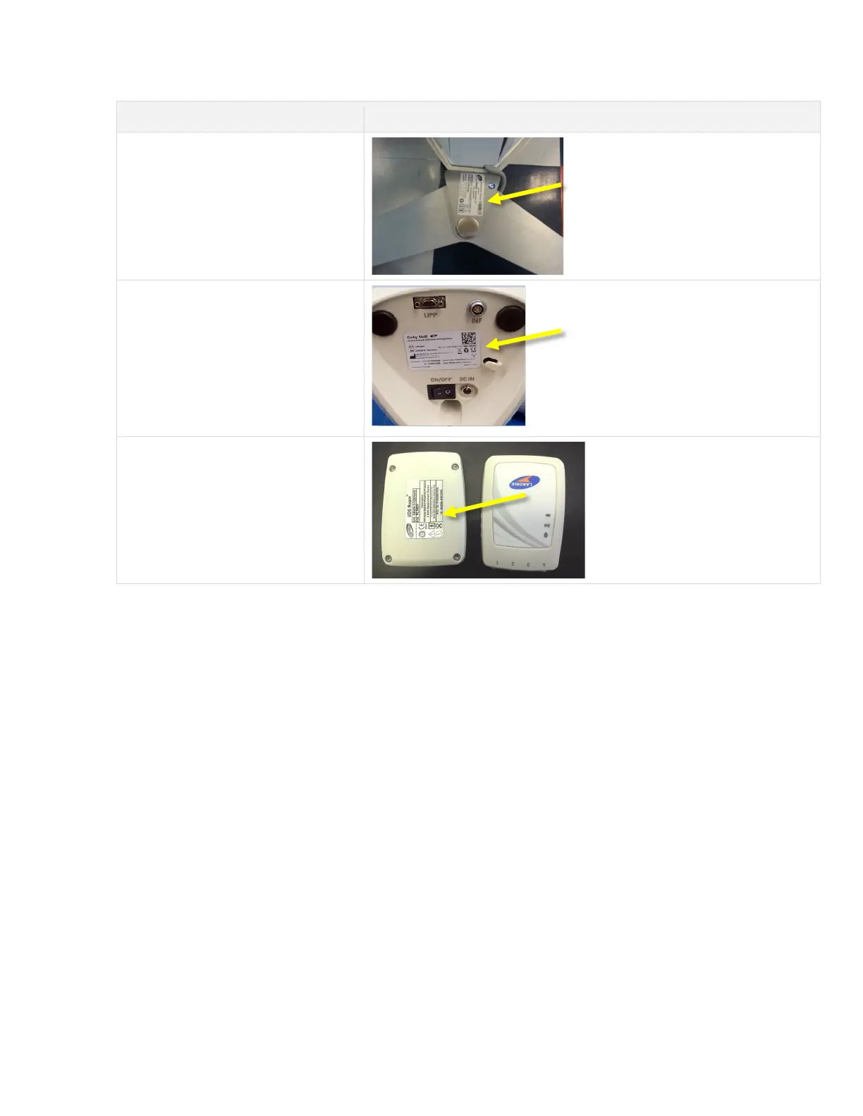 Labels can be found on the devices as follows: