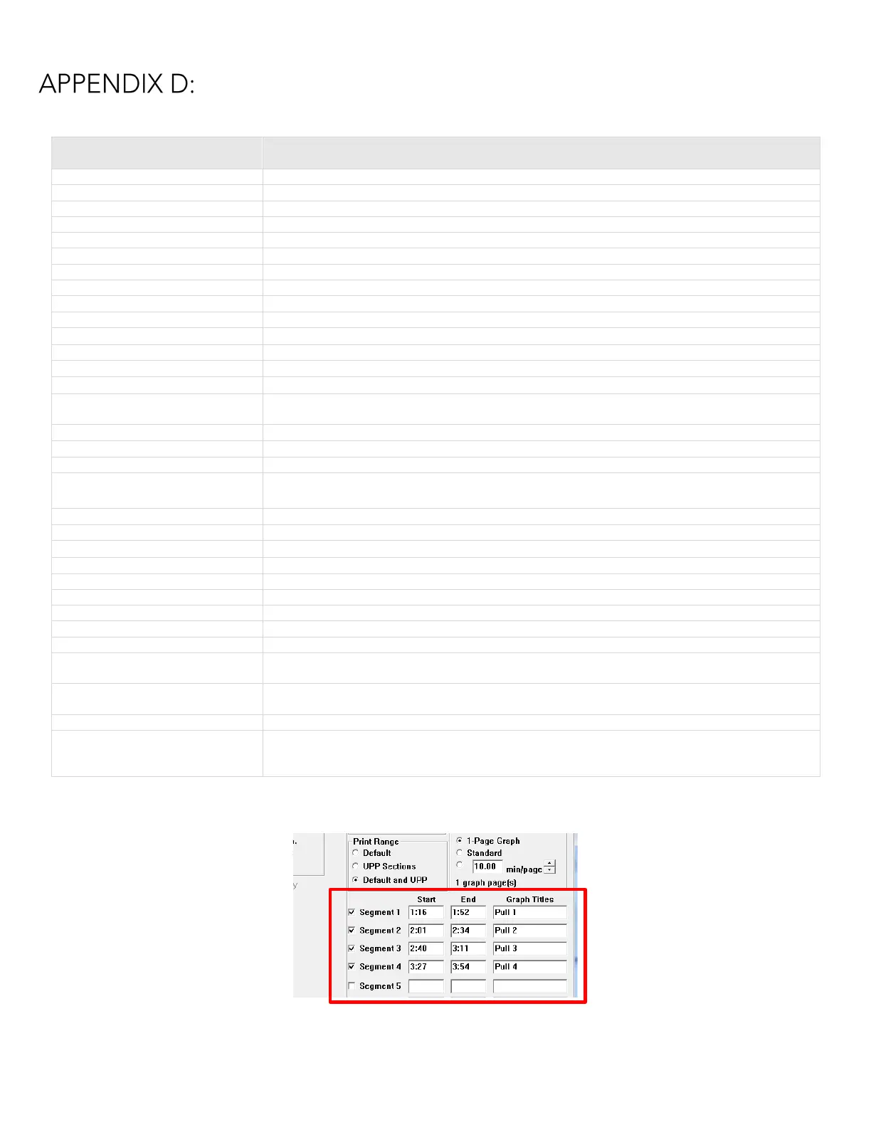 Manually select up to 8 segments or sections of the graph to be printed as opposed to printing
