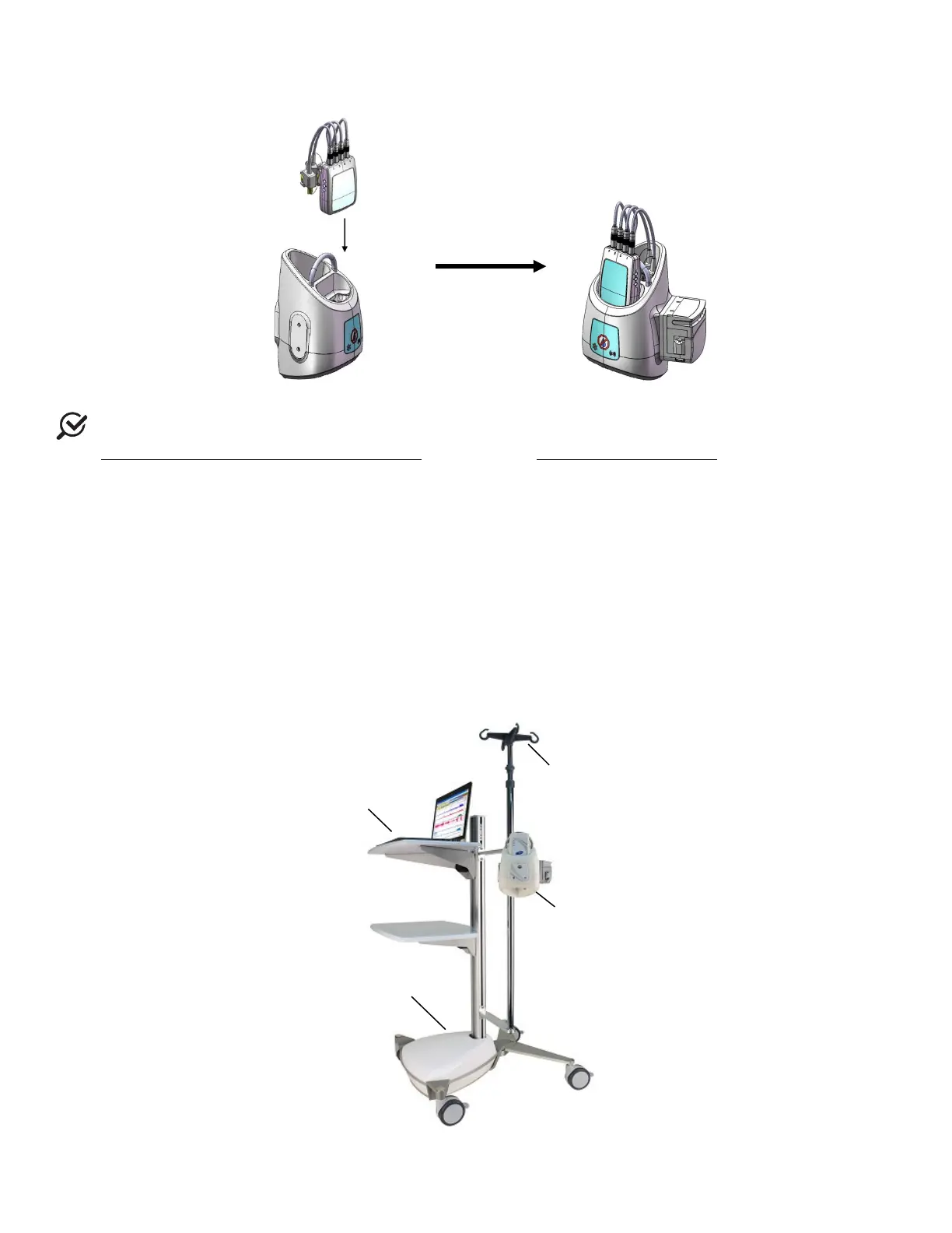 • Place the Urocap™ IV on the floor as needed for tests. Plug into the power supply to begin charging.