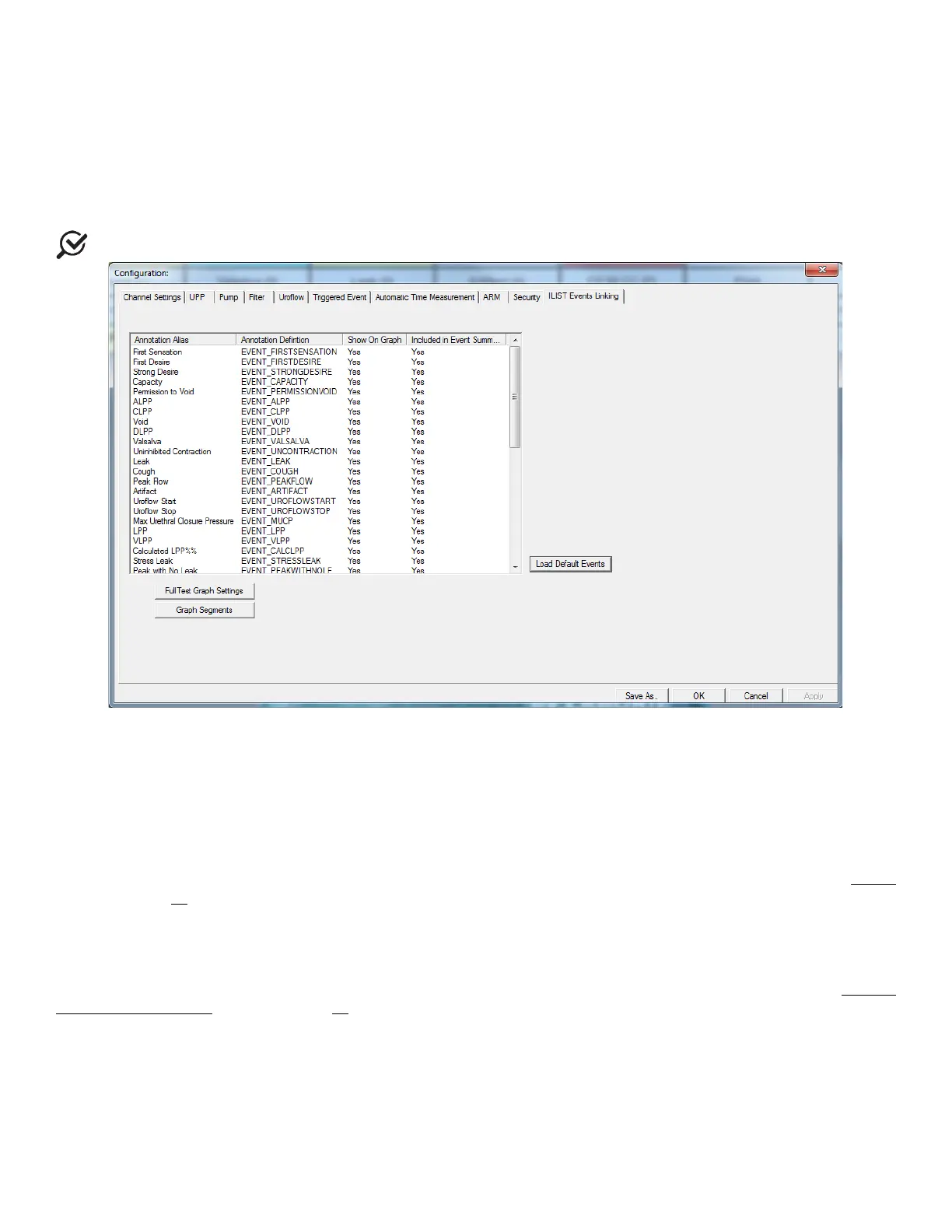 iList™ Office Reporter will display only the events that appear in the list under this tab. The Annotation Alias needs to