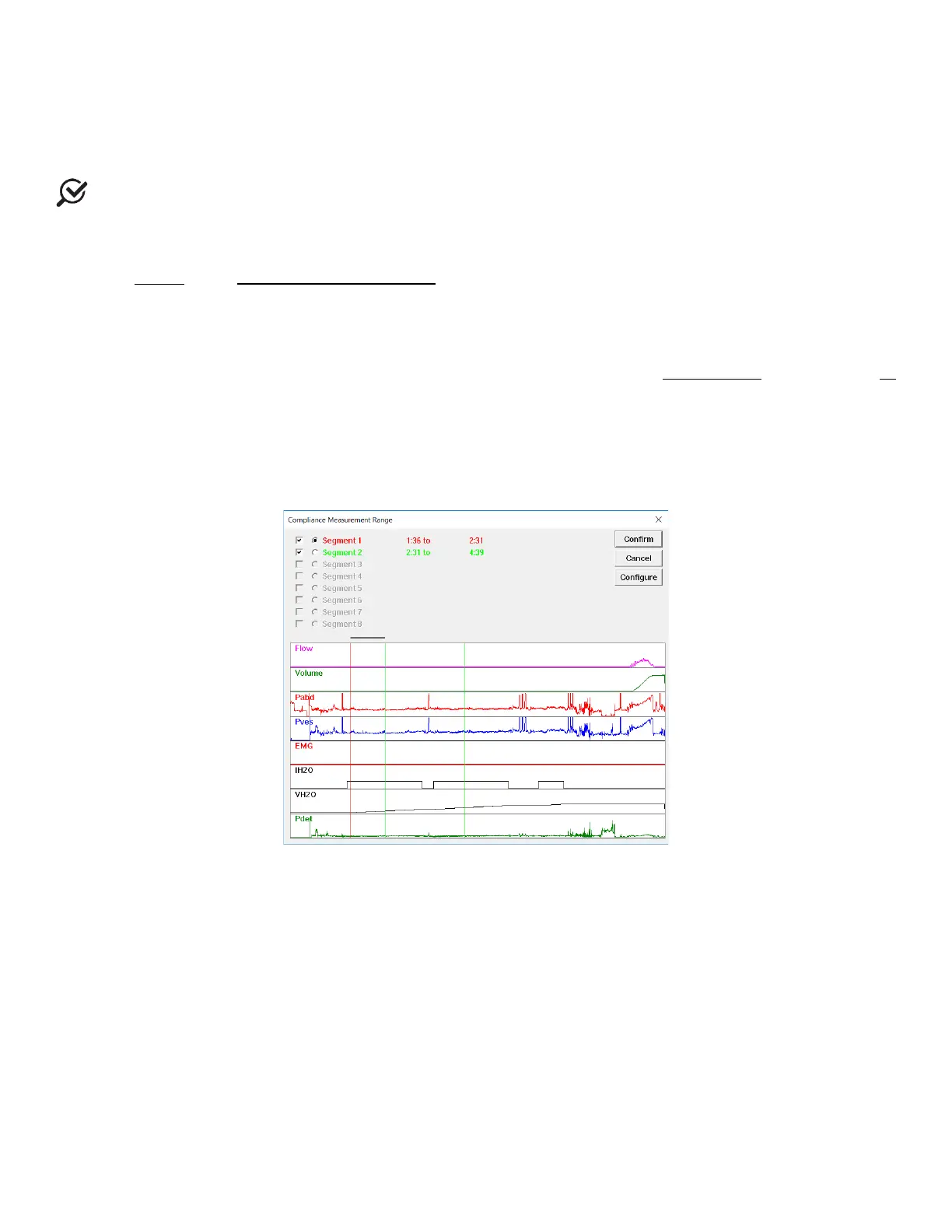ompliance Measurement Range window facilitates the manual selection of segments for Bladder