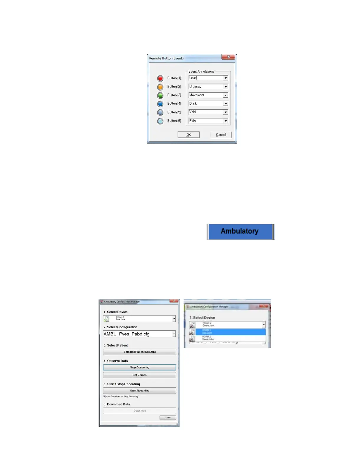 4. Select the configuration file to use for the ambulatory test from the drop-down menu under section 2.