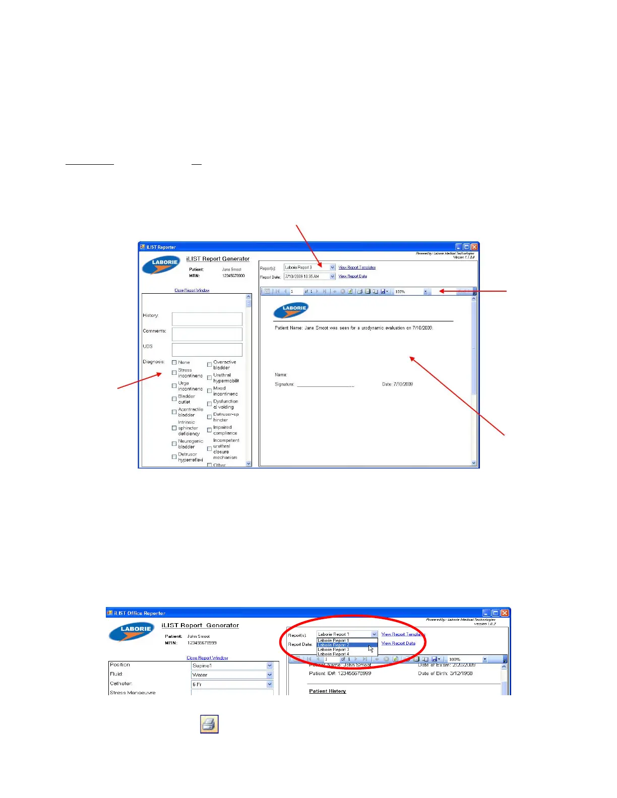 To print a report, click the Print icon on the toolbar in the iList™ Reporter software.