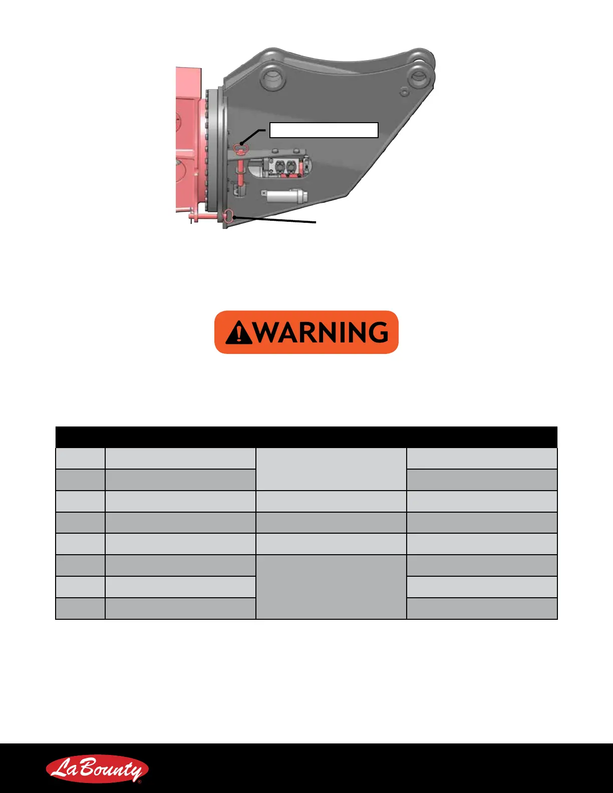 Note: Values given are standard values. For custom attachments reference the parts manual.