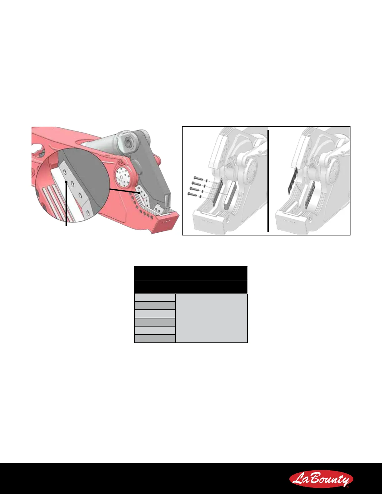 shimmed smaller or larger. When using the shear in these special applications, contact LaBounty Customer Service for