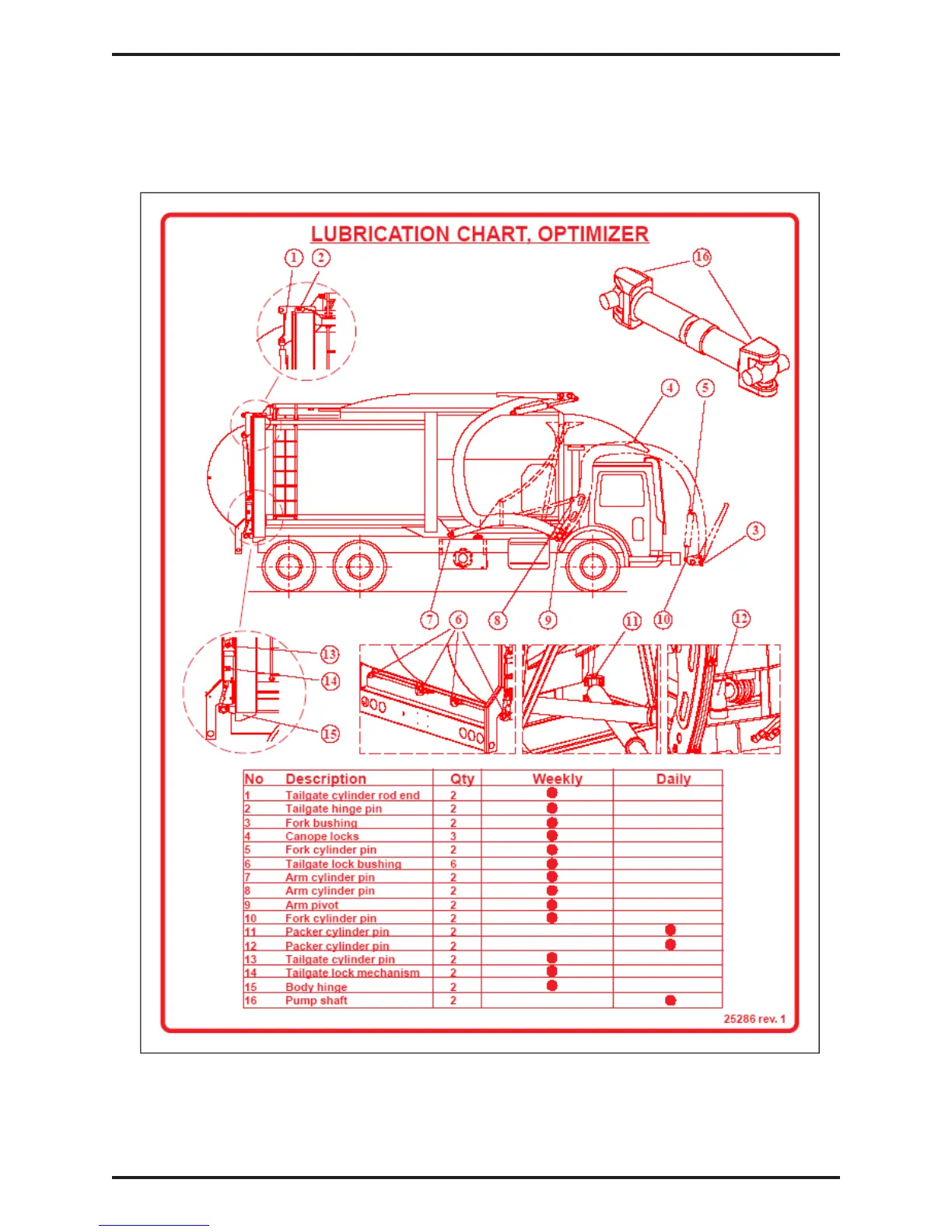 LUBRICATION CHART ON SIDE OF THE TRUCK